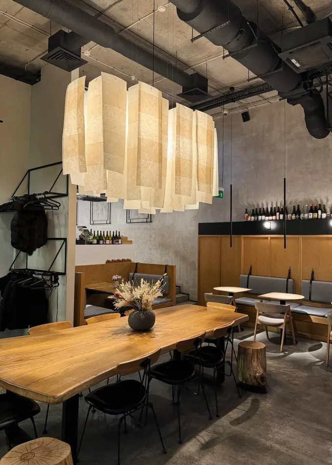 Юлия: Этот проект мы затеяли, когда подключили нашего постоянного гостя Мишу — он ходил еще в наш маленький 6am. У него компания Hot Walls, которая занимается дизайном интерьеров. Они с ресторанами не работали, а делали в основном премиальные квартиры, дома и прочее. Но так как он к нам ходил и любил то, что мы делаем, мы сказали: «Можешь нам сделать проект ресторана?» Он согласился.