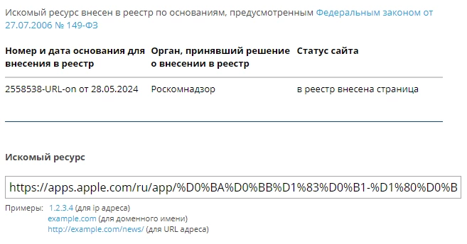 В реестр запрещенных сайтов внесли ссылки на игру в онлайн-магазинах Google Play и App Store, убедился редактор «Большого Города».