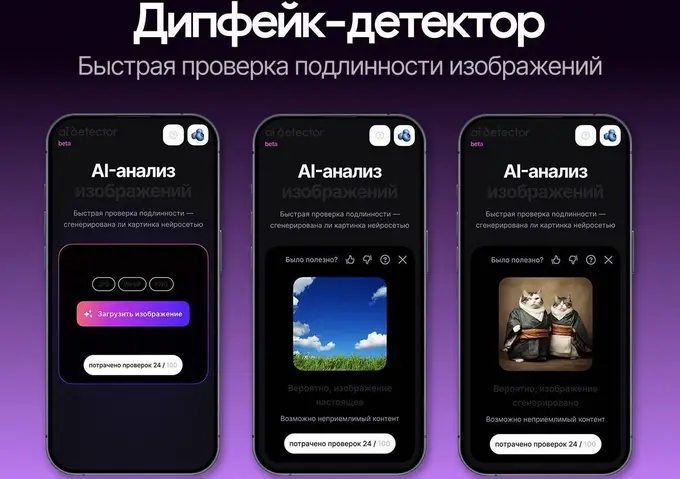 Проверка одного изображения занимает несколько секунд. Каждому аккаунту доступно 100 проверок в месяц. Создатели обещают, что точность определения сгенерированных изображений составляет 95 %.