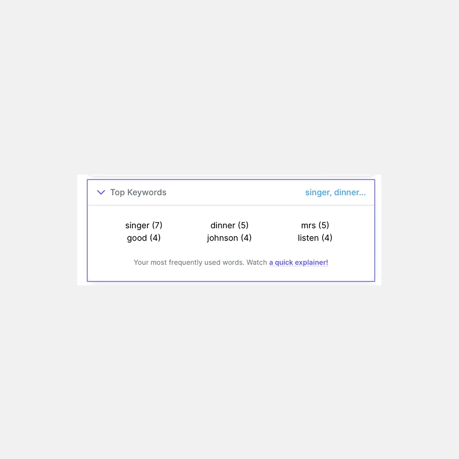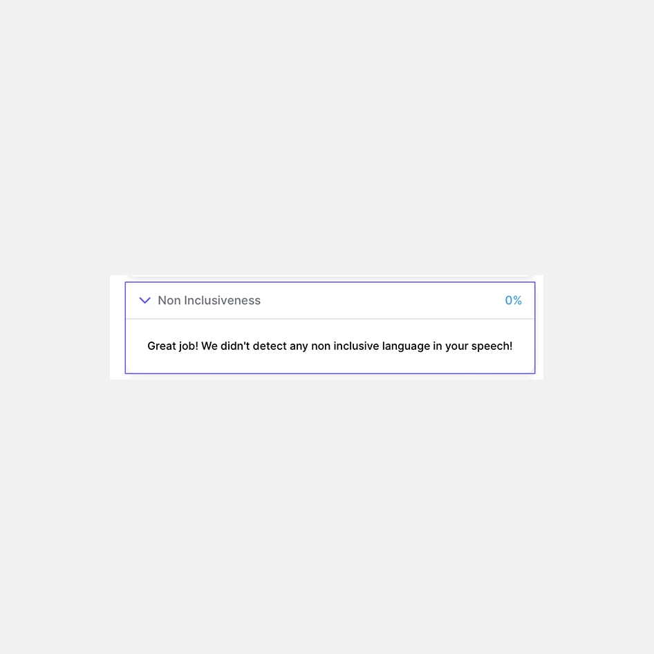 Кроме этого, Yoodli подсказывает слова-пустышки, указывающие на заминку и паузу в речи (у меня есть вредная привычка говорить «эх» или «эм»), ключевые слова, которые вы чаще всего использовали, и non-inclusive words, то есть выражения, которые могут кого-то оскорбить или дискредитировать. Например, «как все нормальные люди», «разве вы этого не знали» и другие. Посмотреть примеры non-inclusive language можно здесь. У меня в тексте таких фраз не встречалось, поэтому сервис написал «хорошая работа».