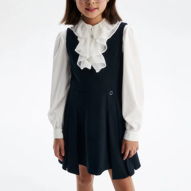Школьная коллекция премиального бренда одежды для детей с рождения обновляется каждый год, а вещи в ней подходят и подросткам до 16 лет. В линейке пиджаки, брюки, юбки, платья, блузы, жилетки и другие вещи классического и современного кроя. Основной цвет коллекции — темно-синий.