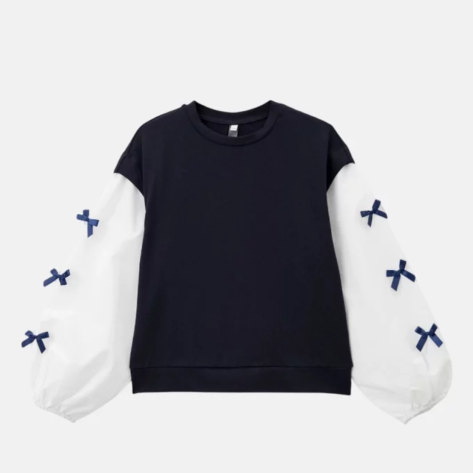 В итальянском Benetton к школьной коллекции подходят сдержанно и следуют стандартам минимализма: все вещи однотонные, в синем, сером и белом цветах. Крой тоже в основном классический, так что эта школьная одежда для консервативных родителей и/или требовательных школ.