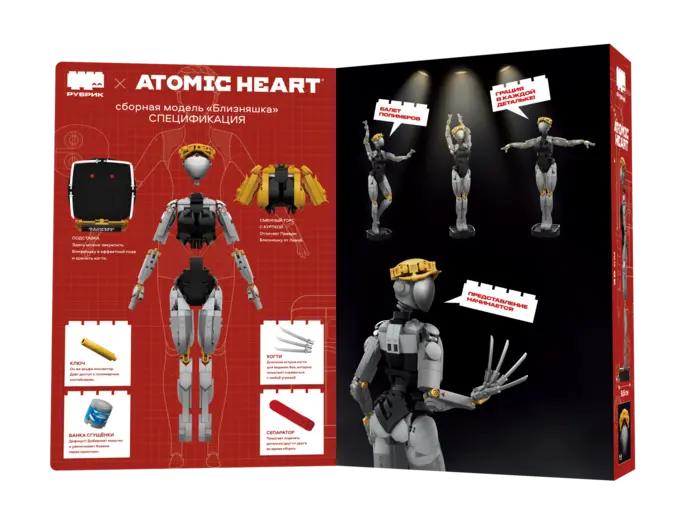 Отечественный бренд конструкторов «Рубрик» в партнерстве со студией-разработчиком игр Mundfish выпустил набор по мотивам Atomic Heart — сюжет стал победителем локального голосования в телеграм-канале компании. В основу лег образ одного из самых узнаваемых персонажей игры.