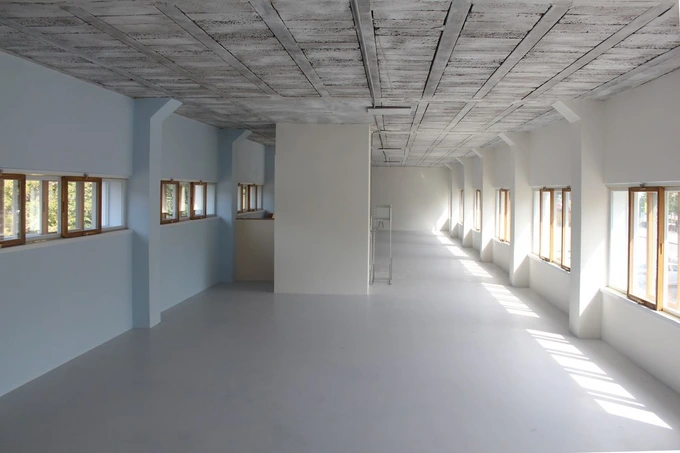 В прачечной укрепили несущие конструкции, фундамент и грунт, воссоздали лестницу с деревянными перилами, деревянные раздвижные окна и двери, пол на первом этаже. Строители восстановили открытую террасу (которая указана в объявлении как эксплуатируемая кровля), реконструировали вентиляцию, отопление и водоснабжение.