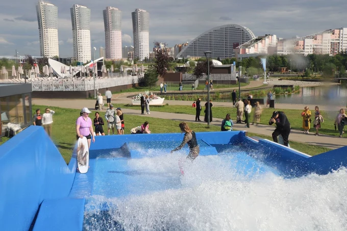 В парке на Ходынском поле установили искусственную серфинг-волну