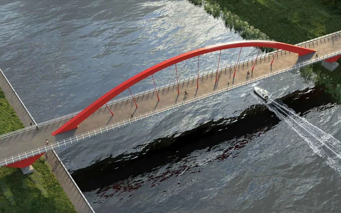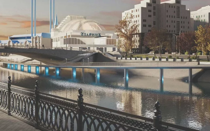 Конструкция 170-метрового сооружения будет выполнена в серо-белой цветовой гамме. Ширина моста составит не менее 5,4 метра. Проектом предусмотрены четыре спуска на набережную, два из них — с уклоном для колясок и маломобильных жителей.