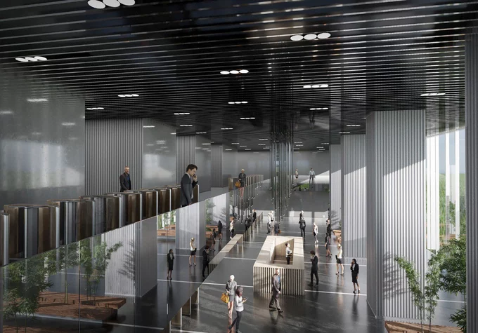 В инфраструктуру объекта входят собственный подземный шестиуровневый паркинг и двухэтажное Sky Lobby с кафе, event-hall и смотровой площадкой. В пространстве БЦ откроются рестораны, фуд-моллы, SPA-комплекс и фитнес-центр с 50-метровым бассейном с видом на небоскребы делового квартала.