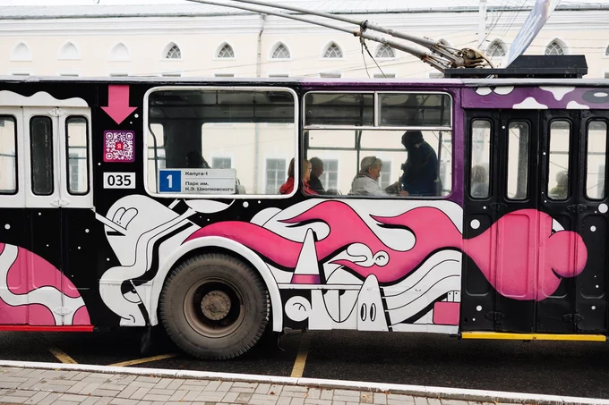 По всему городу протянулся Млечный путь — работа художника NOOTK «Звездный транзит» превратила городской троллейбус в космическую станцию. А 28-метровая труба на Театральной трансформировалась в «Вертикаль» — визуальную ось, соединяющую земное и небесное.