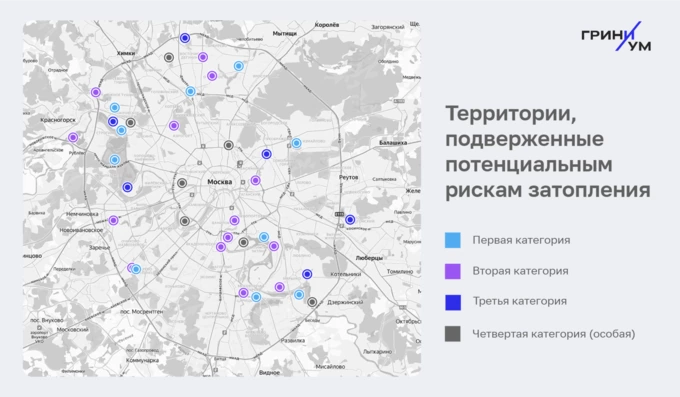 Карту «Гриниум» составил на основании сведений Гидрометцентра, МЧС, ИГКЭ, Московско-Окского БВУ, Мосгоргеотреста.