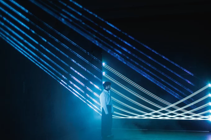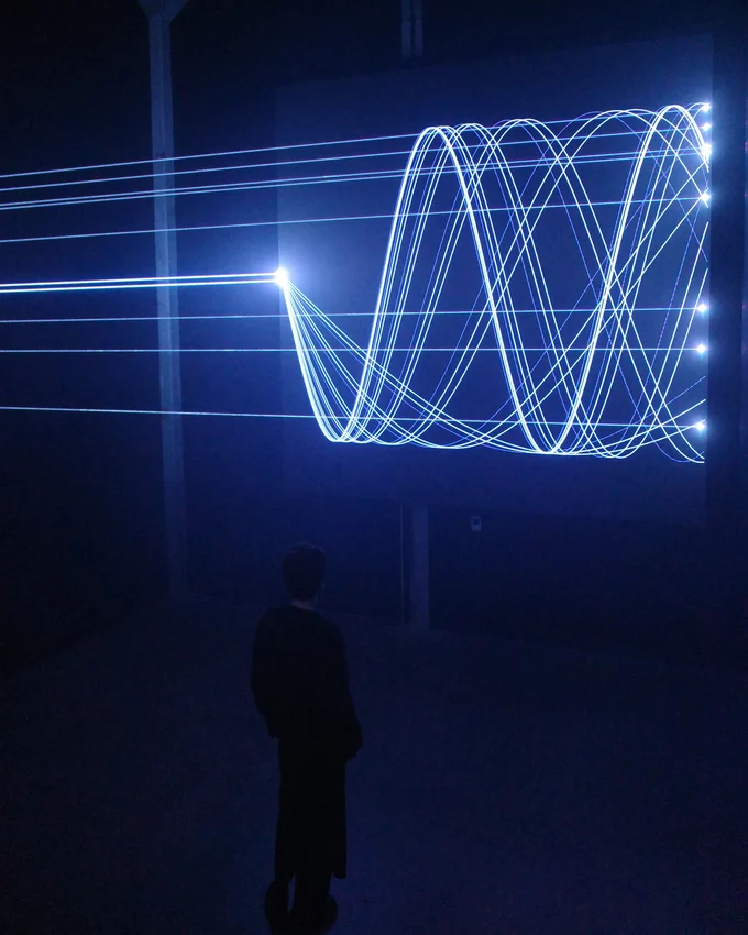 - кинетическая лазерная скульптура Subscapes Саши Коджо — свет, движение и звук в ней работают вместе, создавая ощущение плотности и материальности в том, что по сути нематериально.