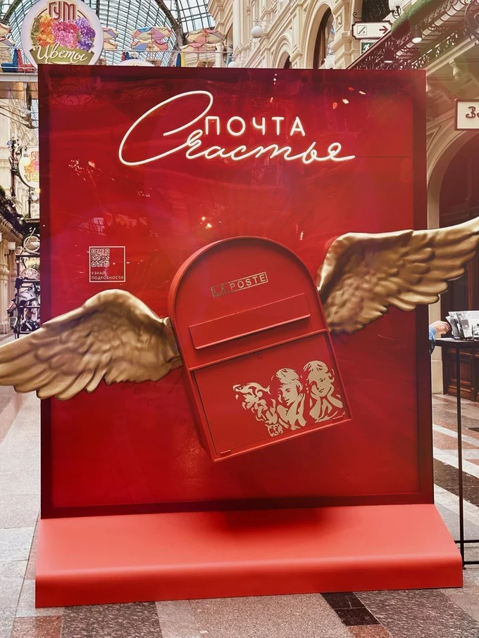 А еще в ГУМе заработала «Почта Счастья» — двухметровый почтовый ящик. До 27 сентября посетители, совершившие покупки от 1 000 рублей в бутике «Счастье», могут отправить с его помощью открытку с московским адресом. Получатели смогут обменять ее на набор конфет до конца октября.