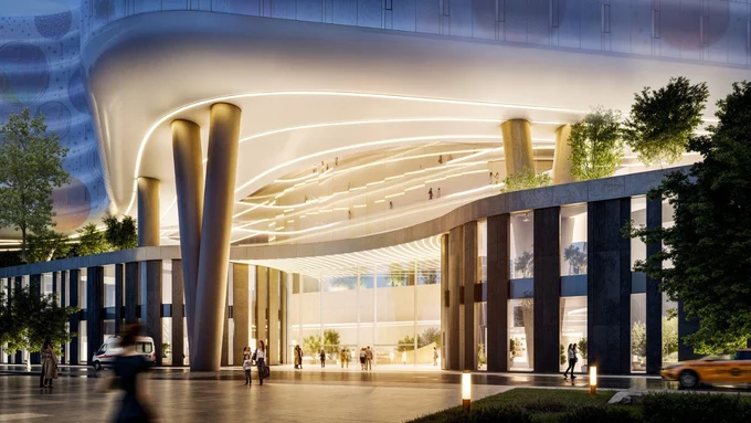 Проект включает десятиэтажное здание с трехэтажным стилобатом. Согласно концепции, белый фасад с шелкографией должен создавать эффект легкого и «парящего» здания. Планируется, что палаты будут оснащены большими окнами, а горизонтальные переходы облегчат перемещение пациентов и персонала.