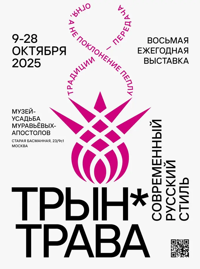 С 9 по 28 октября в Музее-усадьбе Муравьевых-Апостолов в Москве пройдет восьмая ежегодная выставка «Трын*Трава. Современный русский стиль», основная цель которой — продемонстрировать, что культурный код России не принадлежит прошлому, а существует в непрерывности времени.