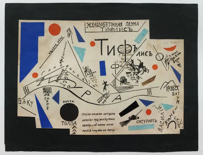 В экспозиции представлены ключевые произведения Алексея Крученых, Давида Бурлюка, Василия Каменского, Владимира Маяковского, созданные в сотрудничестве с художниками-авангардистами Михаилом Ларионовым, Натальей Гончаровой, Казимиром Малевичем, Ольгой Розановой и другими.