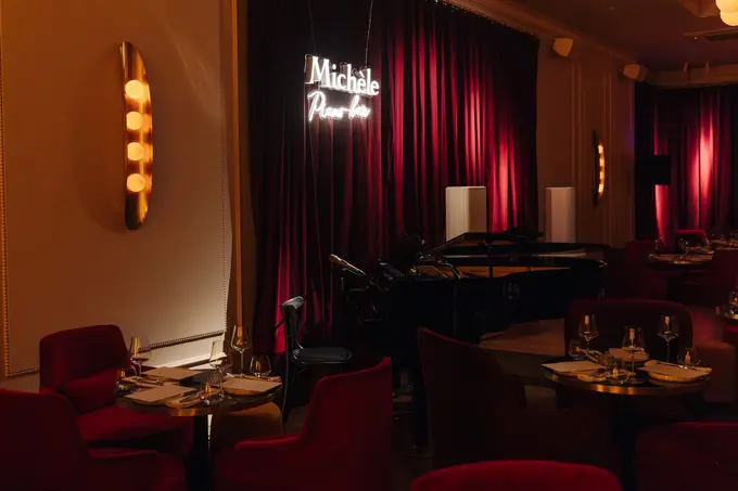 В пиано-баре, открытом на месте зала для конференций «Анна Павлова», — театральные портьеры оттенка бордо, низкая посадка и подсвеченный бар с мраморной стойкой. За коктейли отвечает барный тандем Игоря Ваулина и Тараса Завальнюка. В баре действует свое меню с закусками. Пока заведение работает по пятницам и субботам с 18:00.