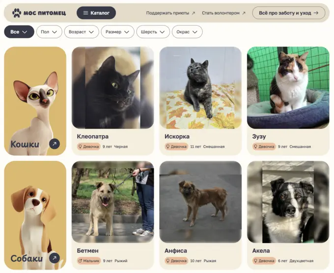 «Моспитомец» — портал с анкетами животных из 13 столичных приютов