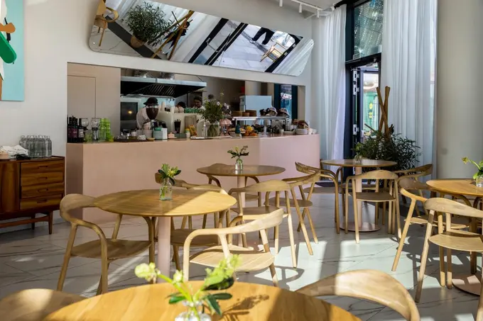 Проект включает два основных пространства. Основное бистро с открытой кухней и панорамными окнами расположено у грунтовых кортов. Второе заведение — La Raquette cafe — находится во Дворце тенниса и предлагает боулы, сэндвичи и кофе на первом этаже, а также авторские блюда из локальных продуктов на втором.