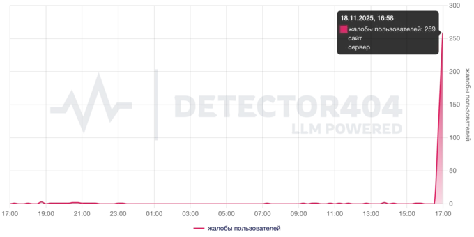 Согласно данным на платформе мониторинга сбоев Downdetector, пользователи массово жалуются на работу соцсети X, стримингового сервиса Spotify, некоторые сообщают о недоступности ChatGPT и игр Epic Games.
