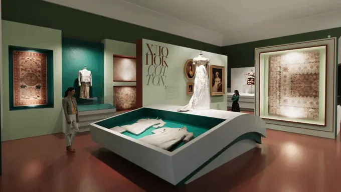 Семь залов выставки посвящены истории хлопка, шелка, шерсти, вышивке, окрашиванию, орнаментам и сари. Экспозиция исследует влияние индийских тканей на культуру Востока и Запада, интерпретацию традиционных узоров и техник, символов и кодов в моде и массовой культуре ХХ и ХХI веков.