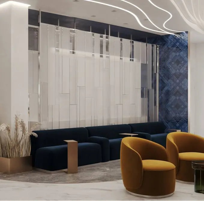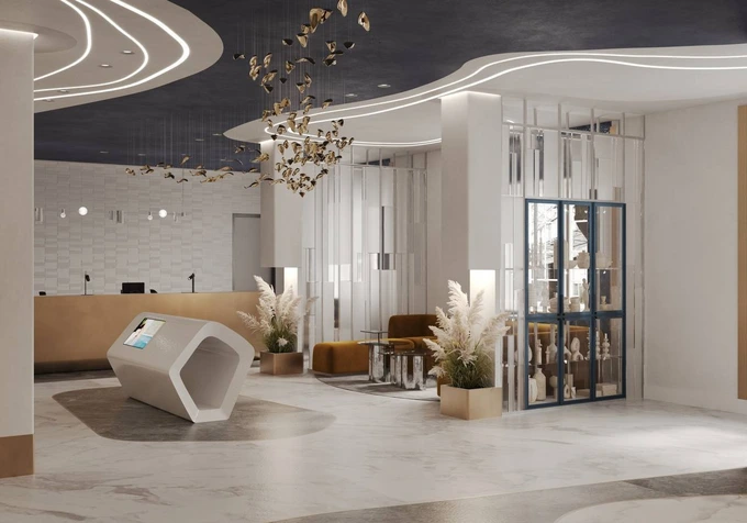 Комплекс площадью более 9 тысяч квадратных метров будет включать номера для 160 гостей, медицинский спа-центр, 20-метровый крытый бассейн, конференц-зал и ресторан с авторской кухней народов Поволжья. Несмотря на отсылку к русской культуре, здесь не будет матрешек и красных узоров — авторы взялись за переосмысление русской души.