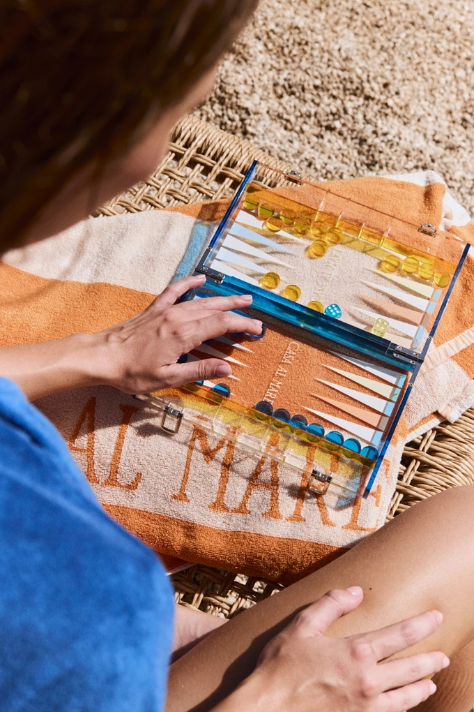 Помимо одежды, можно заказать яркие нарды (6 500 рублей), домино (5 500 рублей) и карты (5 000 рублей) — чтобы не заскучать на пляже, а также то, без чего почему-то сейчас не обходится ни один современный бренд — стикерпак.