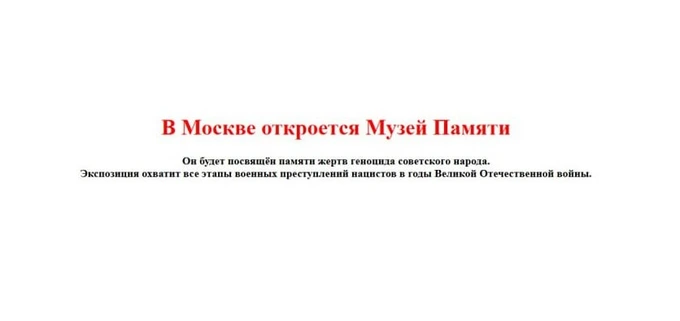 Добавлено в 12:10 мск. На сайте организации появилось сообщение об открытии Музея памяти, который будет «посвящен памяти жертв геноцида советского народа». Экспозиция охватит «все этапы военных преступлений нацистов в годы Великой Отечественной войны».