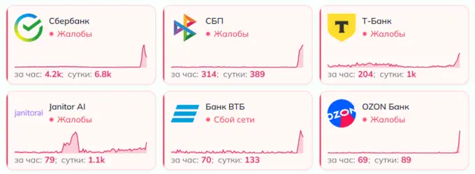 У россиян не работают сервисы Сбербанка. На портале мониторинга сбоев Downdetector уже зафиксировано более 2,5 тысячи жалоб. У пользователей не проходит оплата в магазине, нет возможности отправить другому человеку деньги. Некоторые даже жалуются на работу банкоматов.