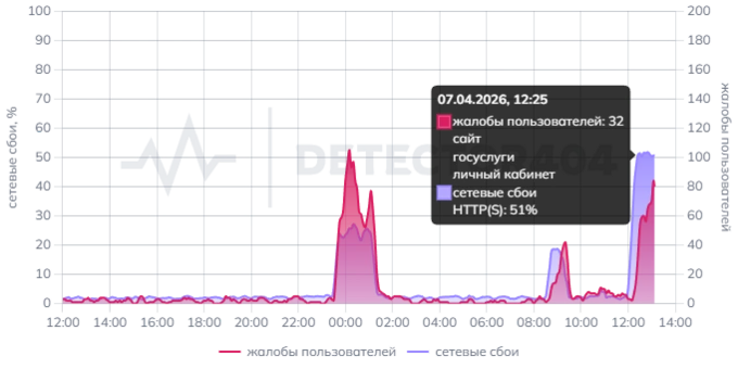 У пользователей не открываются сайт и приложение, а войти в личный кабинет не получается. Всего жалоб за последние сутки поступило больше 900, за час — около 200. Кроме того, Downdetector реагирует не только на жалобы жителей, но и на сетевые сбои.