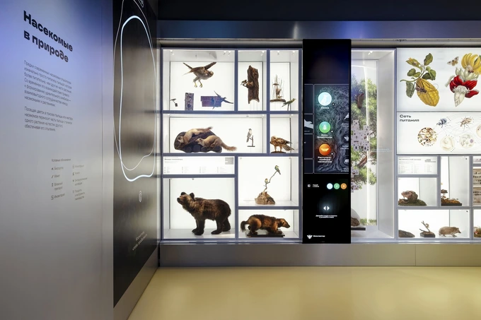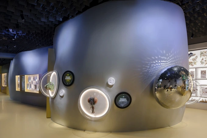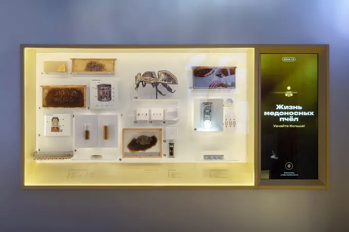 В обновленных пространствах разместили фонды музея, посвященные насекомым — в частности пчелам и пчеловодству. На 520 квадратных метрах обустроены несколько зон: информационная стойка, сувенирный магазин, медовый киоск, лаборатория для мастер-классов с микроскопами и лаборантская.
