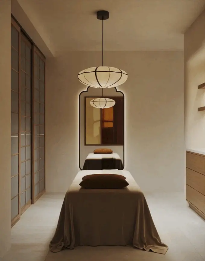 В интерьере с отсылками к японской эстетике также стремились создать атмосферу заботы о теле, условия для восстановления, замедления и перезагрузки.