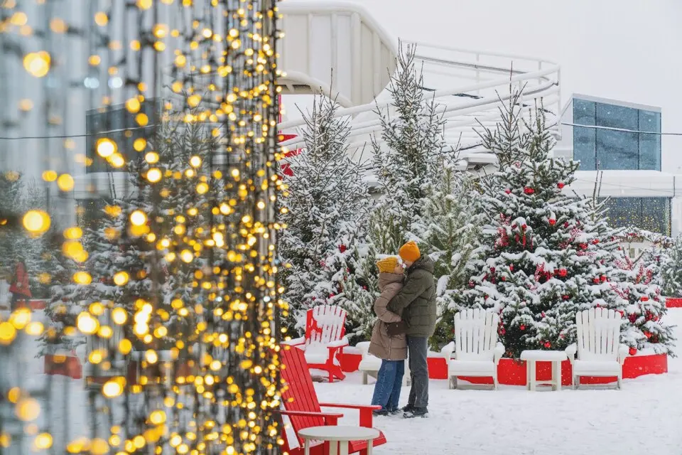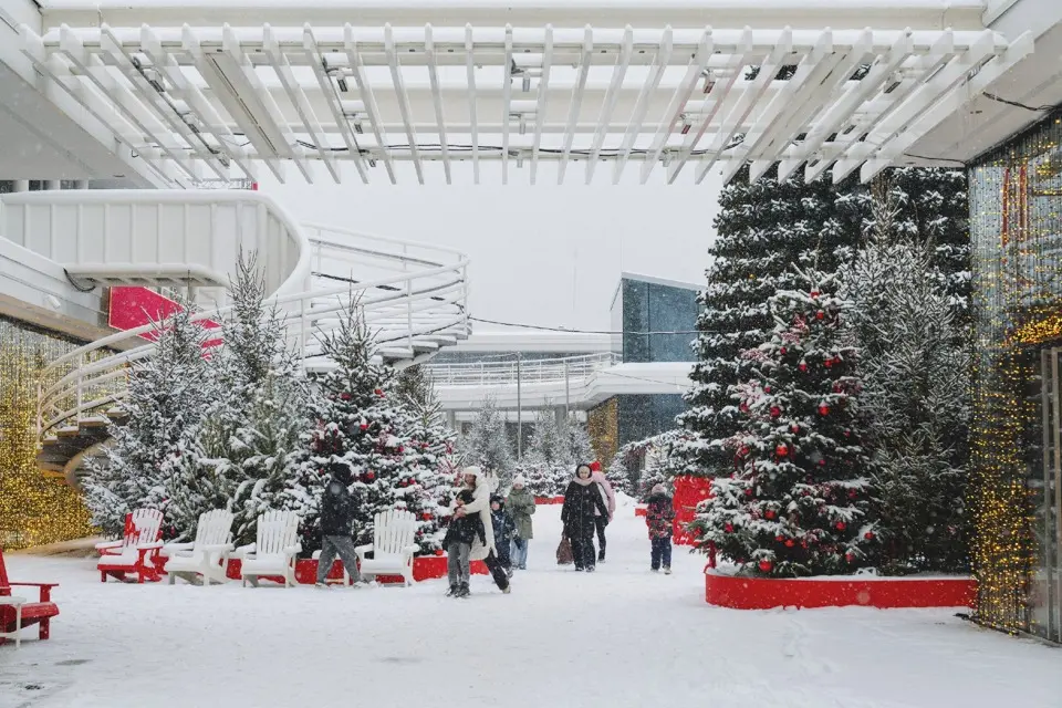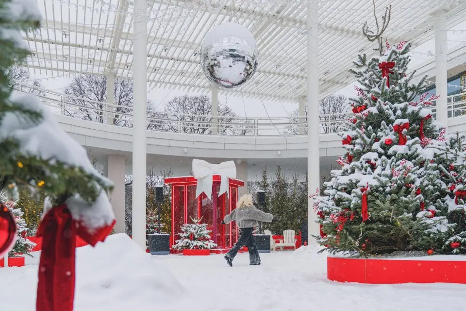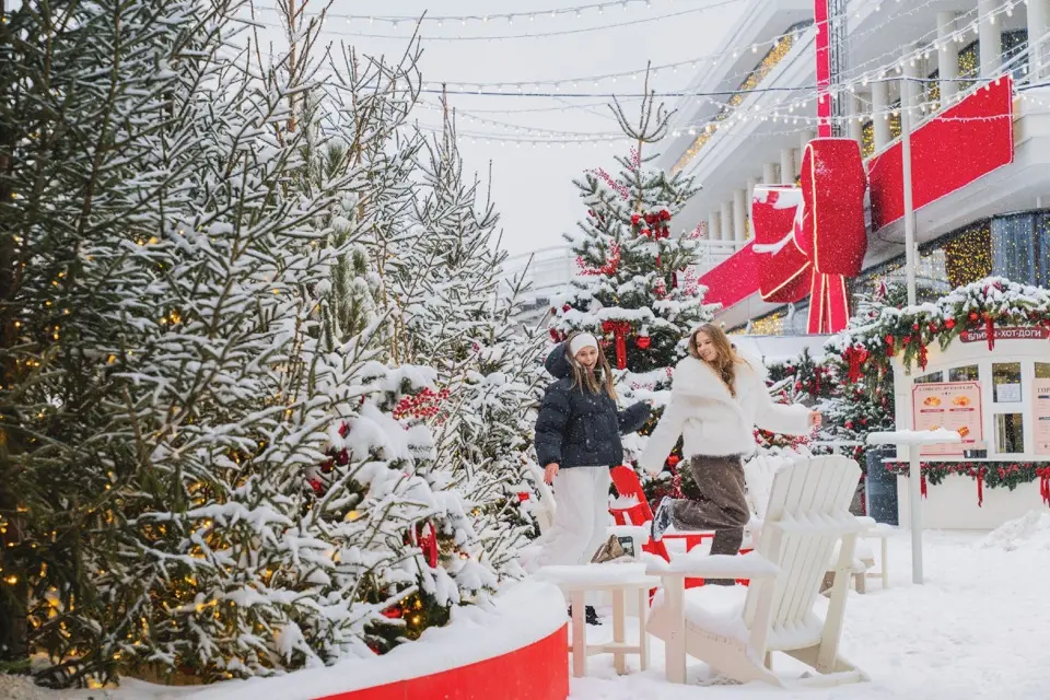 До 31 января в девяти оборудованных шале работают праздничные ярмарки, открыты палатки с едой, а также эта часть парка сохраняет новогоднее настроение — с крупной елью (и более чем с тысячей маленьких), огоньками и буйством красного.