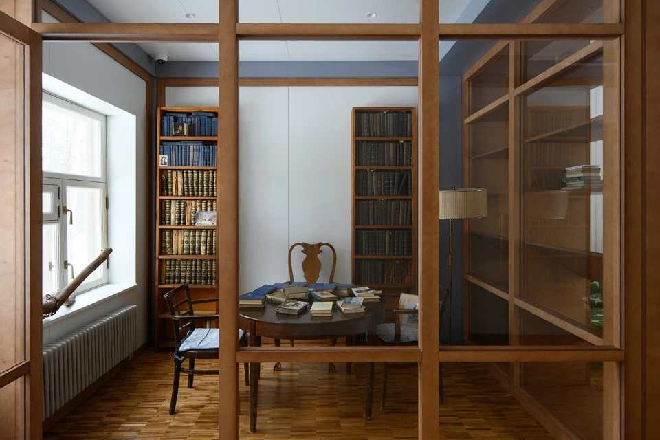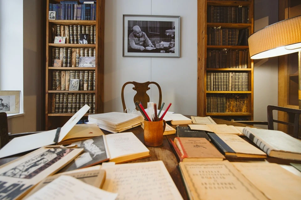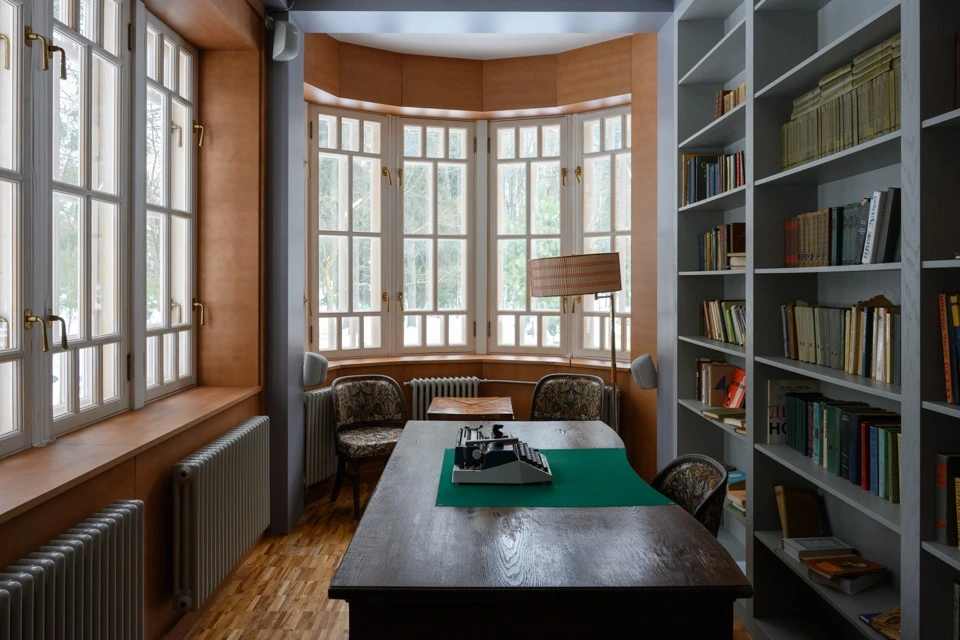 Если вам этого покажется мало, на втором этаже будет поджидать мемориальный кабинет, который передали Дому творчества наследники литератора. По предварительной записи тут можно поработать с архивными материалами — например, с полным собранием сочинений Толстого, в которых оставил множество пометок сам Виктор Борисович.