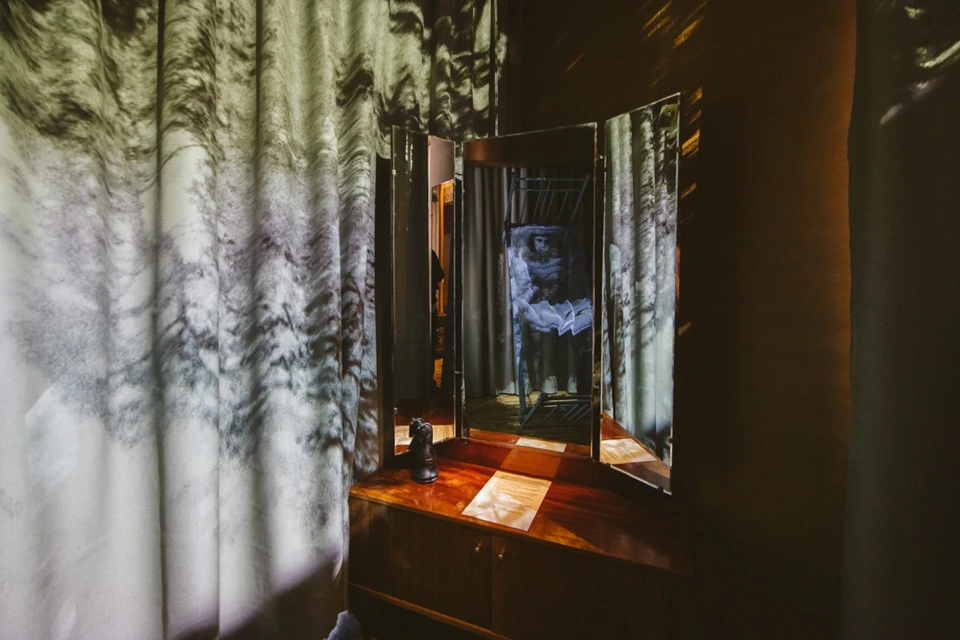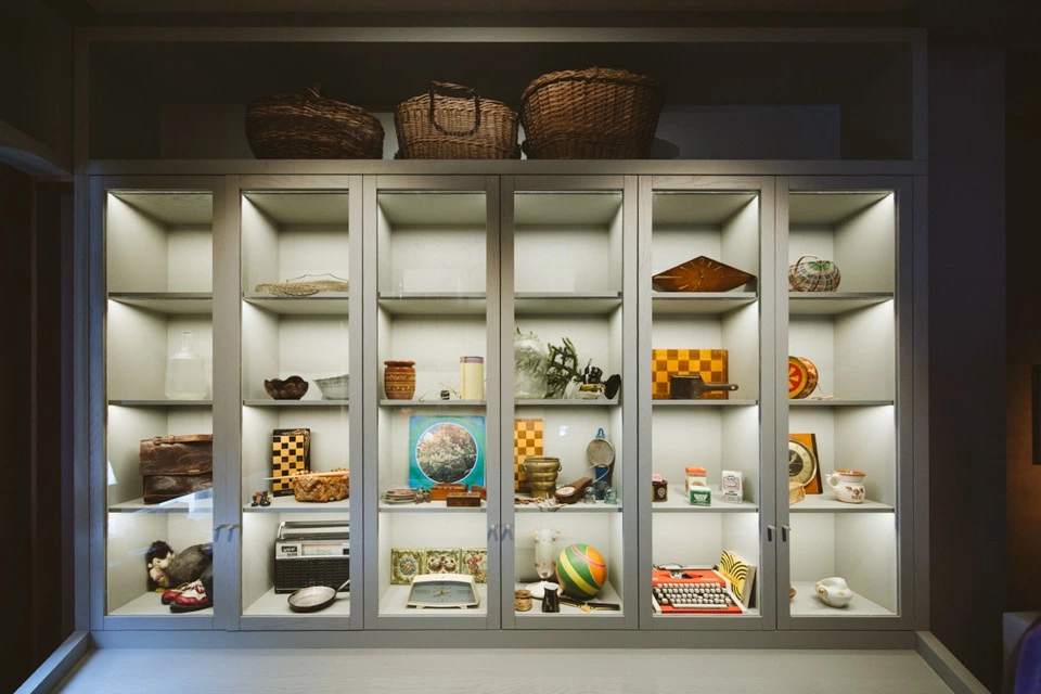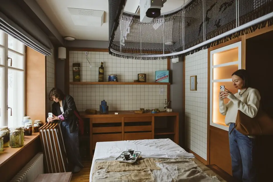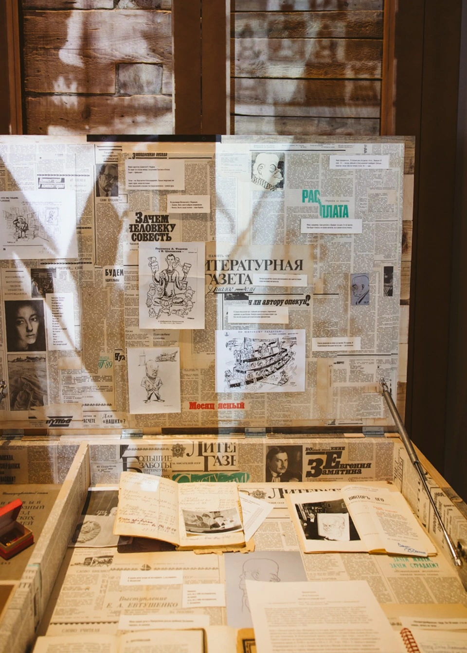 Эта выставка сама вступает в контакт с посетителями, начиная с первого зала. Импровизированные писательские столы прячут в себе артефакты, которые говорят о времени так же много, как и истории рассказчиков, встречающих гостей дальше в каждой из комнат.