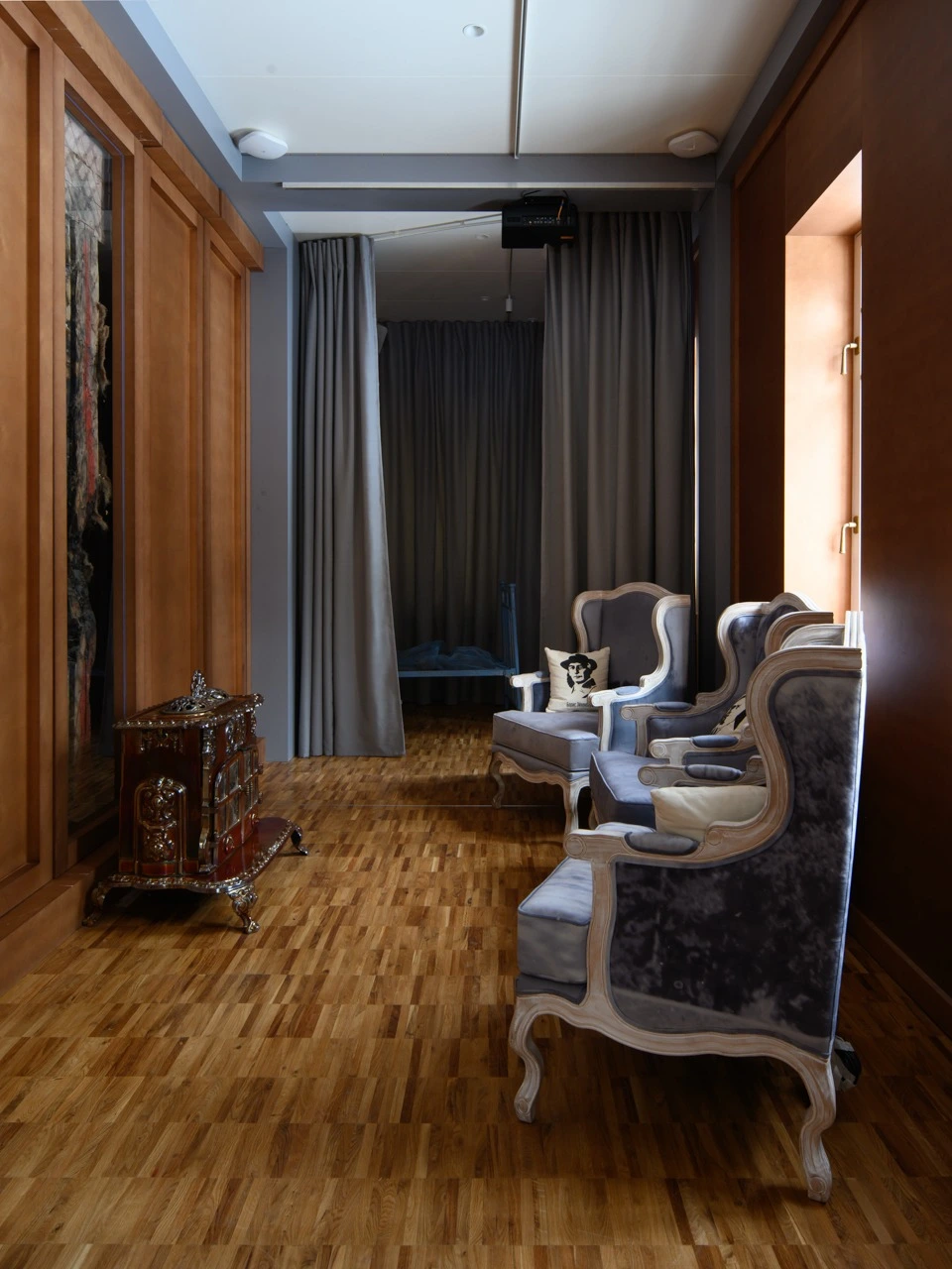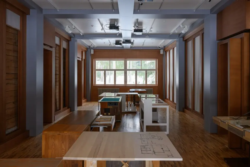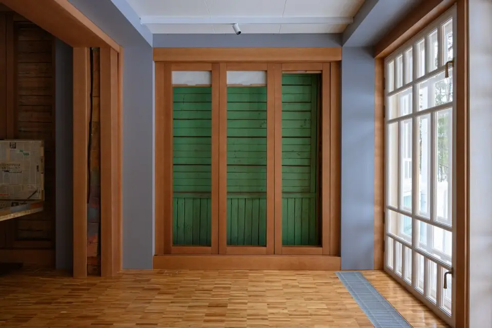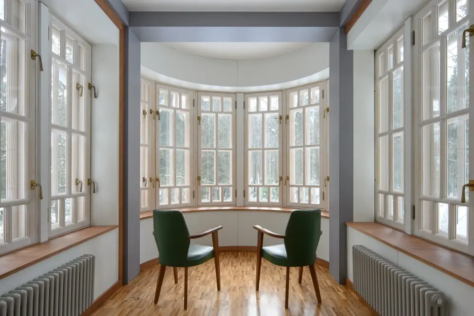 Стены оригинального здания умудрились оставить, буквально подняв дачу целиком, чтобы залить новый фундамент и поставить ее на дополнительные опоры. Все это сделано с той же заветной целью. Пока ходишь из комнаты в комнату, проводя руками по каждой из стен, эффект присутствия начинает кружить голову.