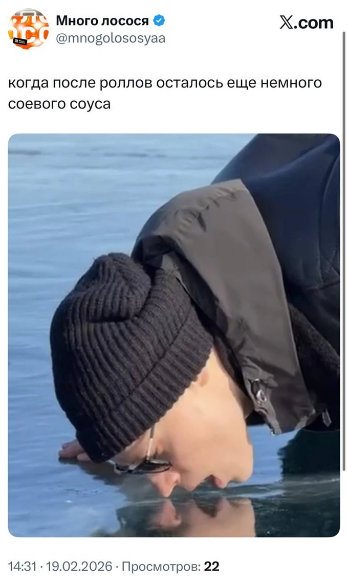 Российский певец Shaman (настоящее имя — Ярослав Дронов) во время гастролей по сибирским городам опубликовал видео с Байкала, в котором предложил зрителям попробовать самое чистое озеро в мире на вкус и облизал лед. Видео незамедлительно нашло место почти в каждом уголке соцсетей — для большинства пользователей озеро мгновенно перестало быть самым чистым. Ролик певец, кстати, подписал «18+» — это уже отдельная часть мемов.