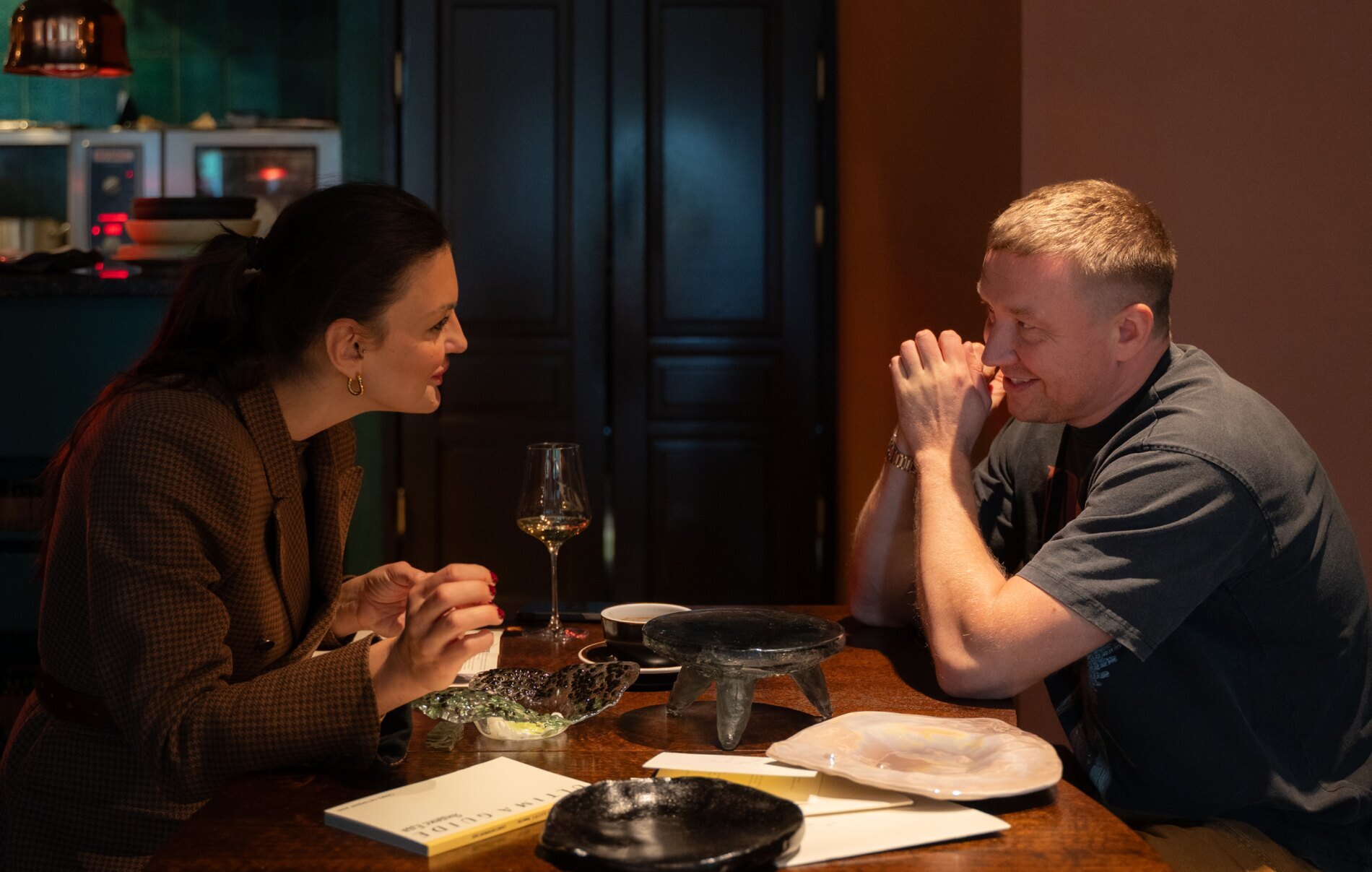 В этот раз нам подавали фантастический сет: каждое блюдо шеф сочинял по полгода в своей экспериментальной лаборатории, но что самое интересное — каждая тарелка создавалась специально под конкретную подачу. Причем совершенно не случайными людьми: Артем лично договаривался об участии в проекте с интересными петербургскими художниками.