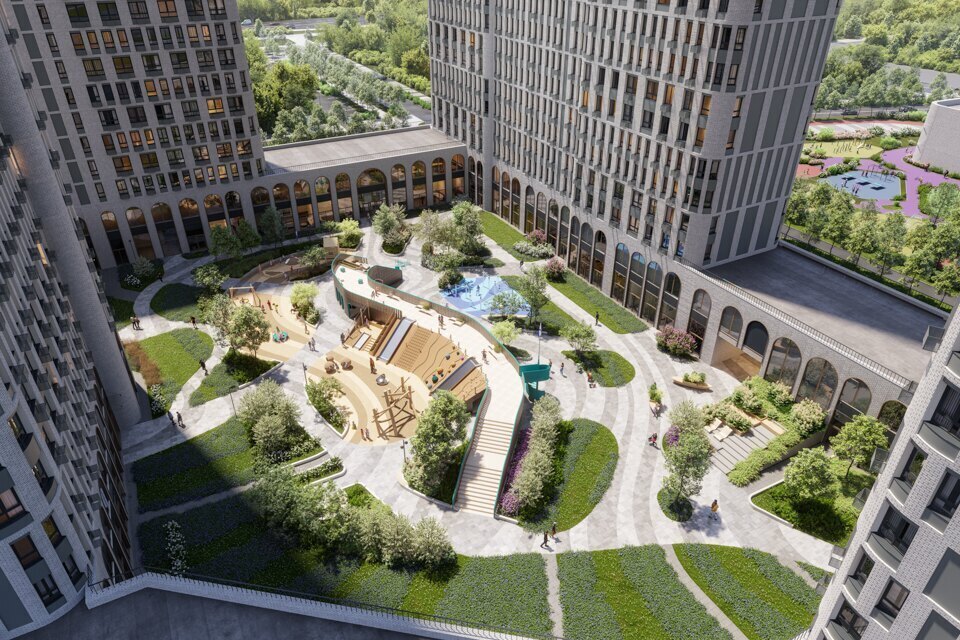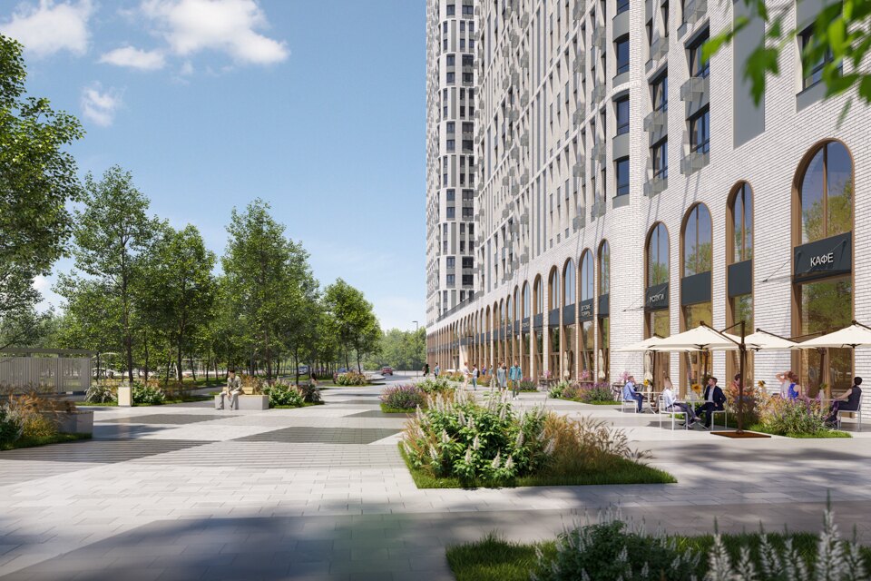 Всего будет построено три квартала на 12 домов от 8 до 60 этажей. Сейчас возводится первый квартал на четыре корпуса — от 13 до 47 этажей. Разноэтажность создаст визуальную динамику и обеспечит максимальный доступ солнечного света во внутренний двор. Первые этажи предназначены для кафе, магазинов, бьюти-пространств, спортивных секций. Рядом появятся бизнес-центр с развитой общедоступной инфраструктурой, детский сад и школа.