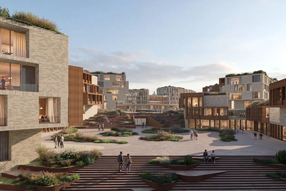Вся территория комплекса будет пешеходной. Парковки планируют разместить под землей, используя перепад рельефа. По словам архитектора, это позволит сохранить природную среду и сделать пространство максимально комфортным для прогулок.