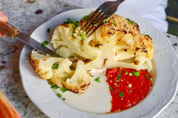 Запеченная цветная капуста с тахини и свежими томатами