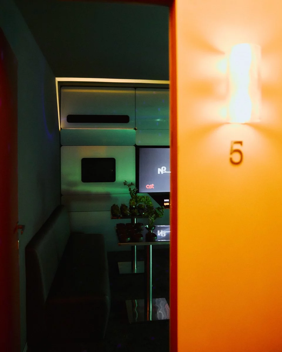 Nomer — новое нуарное караоке-пространство в центре Москвы с собственной дистиллярией и ярким интерьером. Здесь можно спеть как профессионал, попробовать необычные коктейли и сытные сэндвичи на хлебе хоккайдо, и при этом погрузиться в атмосферу вечернего города.