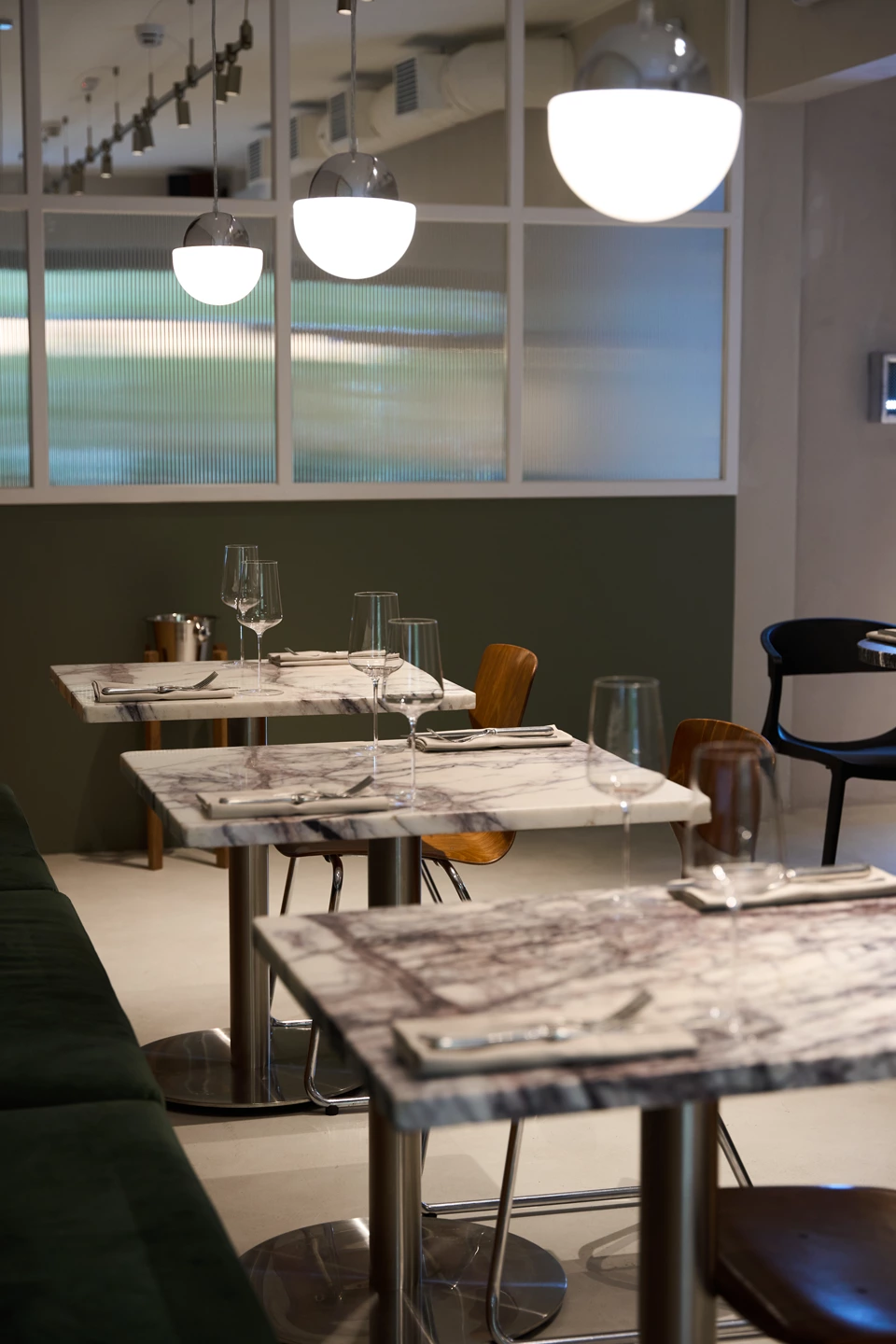 Поэтому Centrale выглядит как возвращение к себе: соседство с Российским домом международного научно-технического сотрудничества, ничего лишнего в интерьере, советский мраморный пол, сложная и далеко не идеальная геометрия пространств, бегущая строка вместо картин и винтажные приборы. А еще крохотная кухня и вариативное меню, которое перепечатывают каждый день.