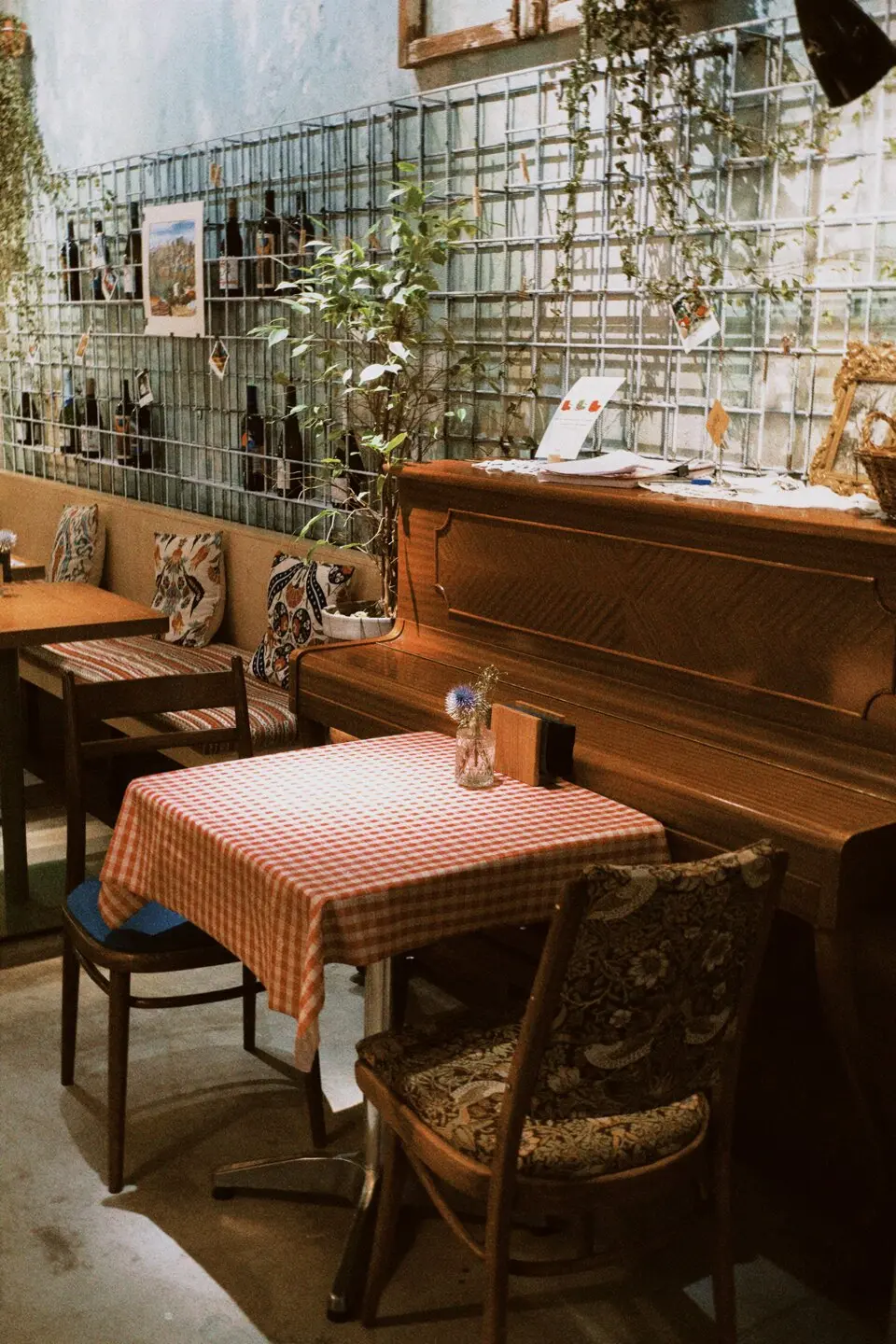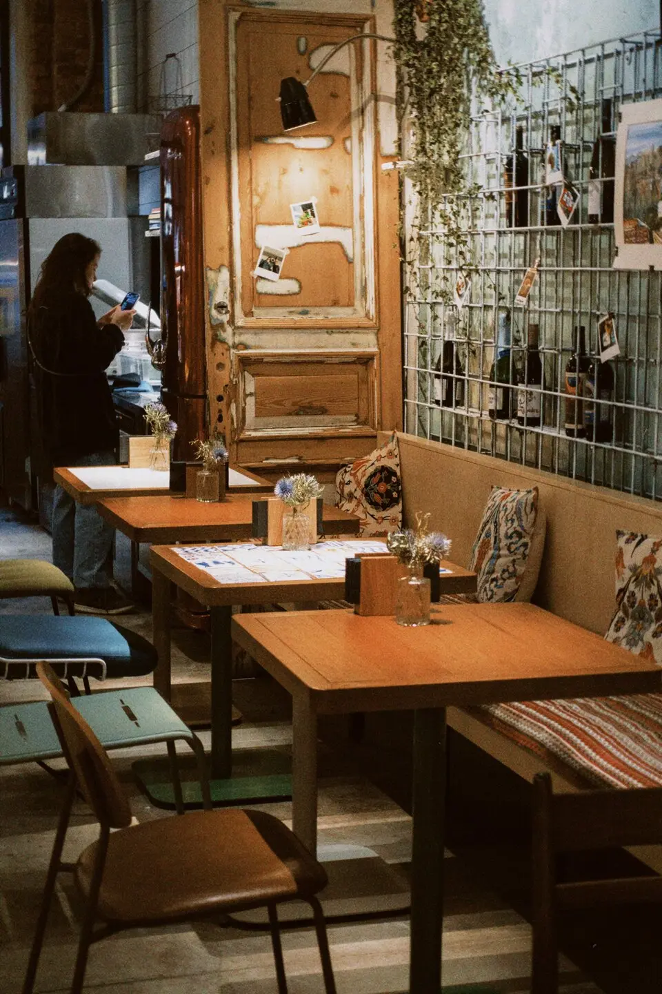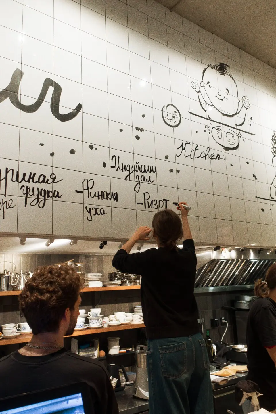 Многие блюда родом с домашней кухни Марианы: это, например, большой армянский завтрак, салат Дженнифер Энистон и десерты без глютена и сахара, придуманные для ее сыновей. И очень трогательно, что именно они нарисованы на большой белой стене с кафелем. Все это в сочетании с ковром на полу, пианино и разномастной винтажной мебелью и посудой действительно создают ощущение дома.