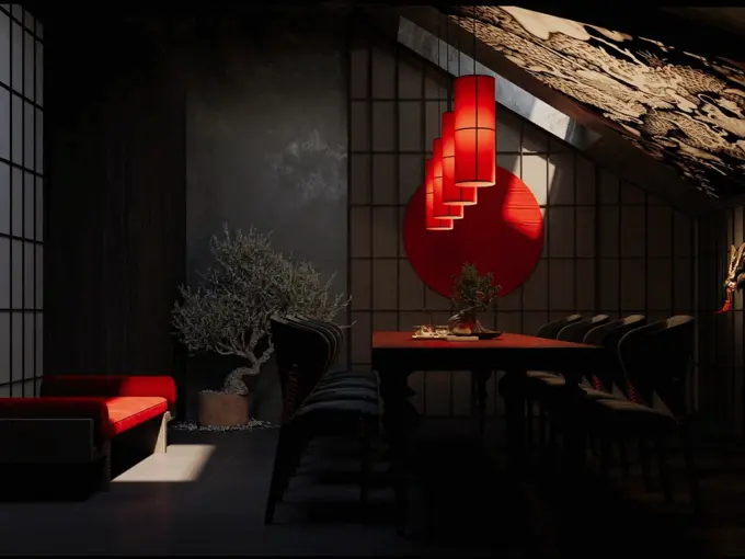 На минус 1-м этаже здесь будет ивент-зона, а на основном, первом — рамен-бар на 150 посадочных мест и ичираку-комната для кулинарных мастер-классов. На мансарде будет целых пять тематических комнат-боксов с караоке и настольными играми.