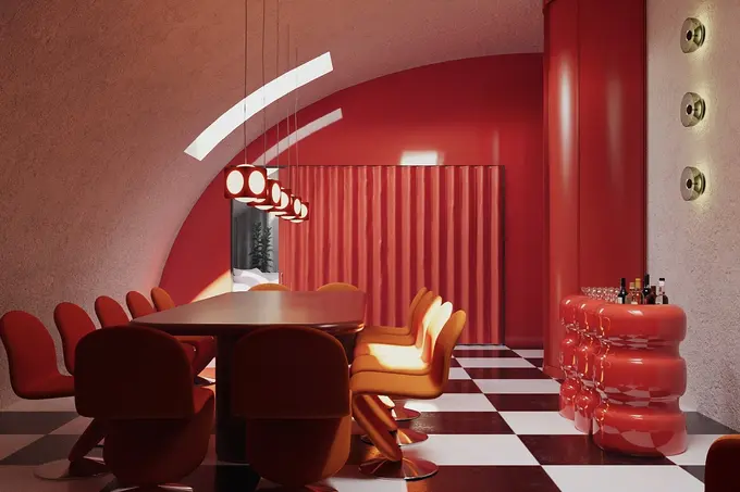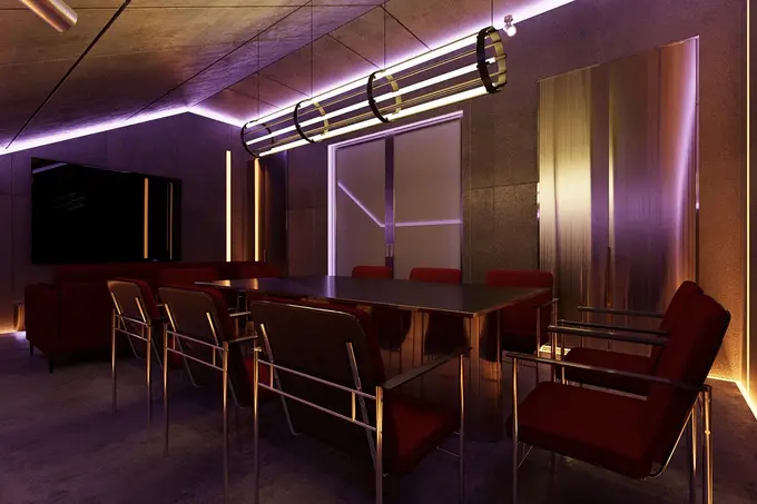 Внизу находится универсальный спот для стендапов, концертов, квизов и вечеринок, где сцена разбирается, свет меняется, а бар выезжает на колесах.