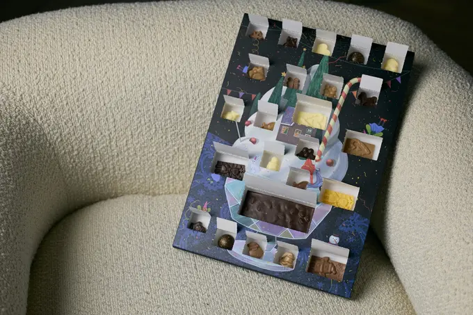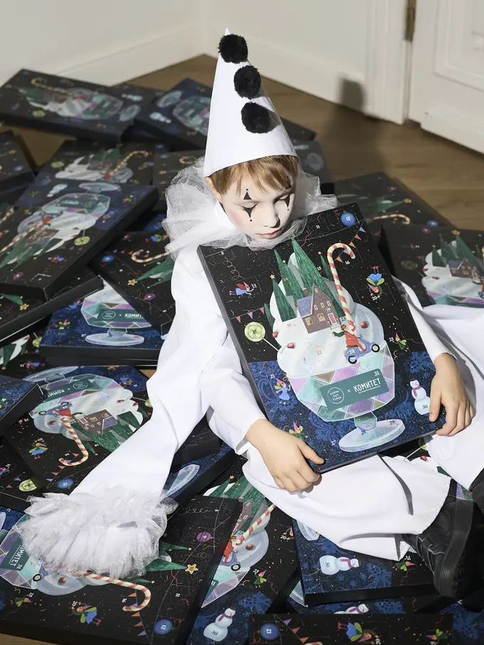 Адвент-календарь — это традиционная открытка или картонный домик с окошками по количеству дней адвента. Вариант «Комитета» рассчитан на дни с 8 по 31 декабря — в каждом отсеке ждет сладость.