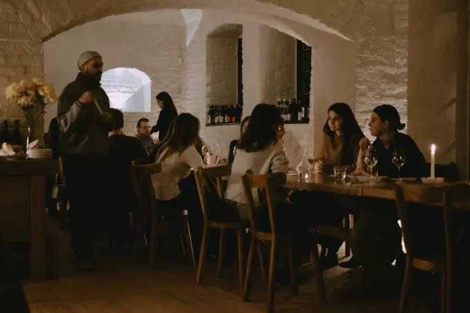 За общий стол на 32 места шеф Денис Парамонов подает французскую кухню все с той же атмосферой «в гостях у близких» — много хлеба с маслом и большие порции всего остального. Всего в меню 17 позиций.