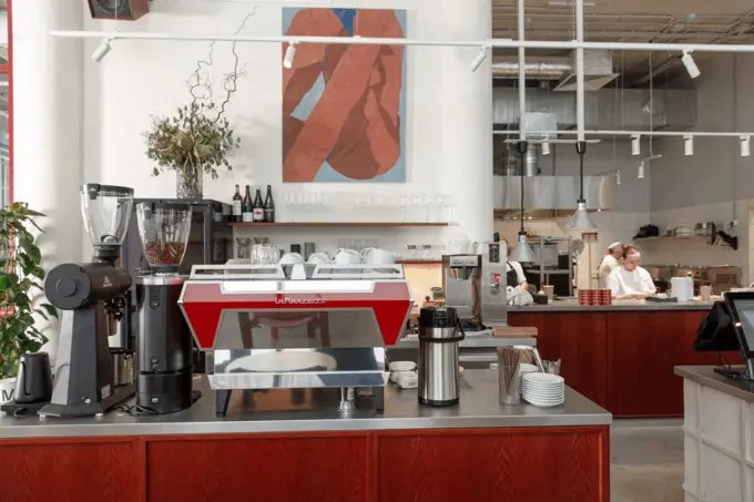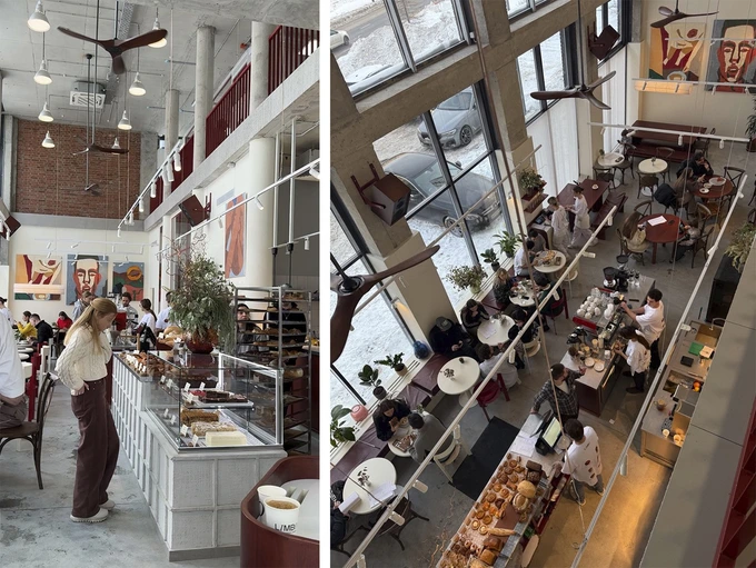 В пространстве площадью более 700 квадратных метров можно наблюдать за производством выпечки, хлеба и кондитерских изделий, обжаркой кофе, процессом приготовления пиццы и работой кухни. Это бистро на 45 посадочных мест — только на территории фабрики и с полноценным comfort food меню.
