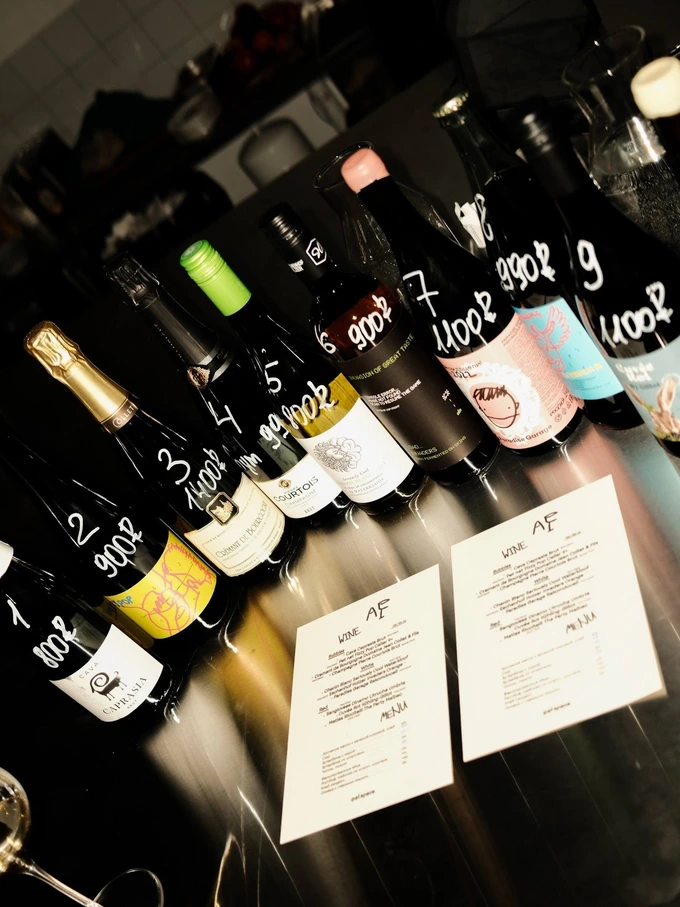 Главное в меню — это вино. Его выбором занимался специалист с девятилетним стажем Стас Метелев. Карта специально не делится по географическим признакам, чтобы гость выбирал вино только по эмоциональной связи — с самим напитком или виноделом.