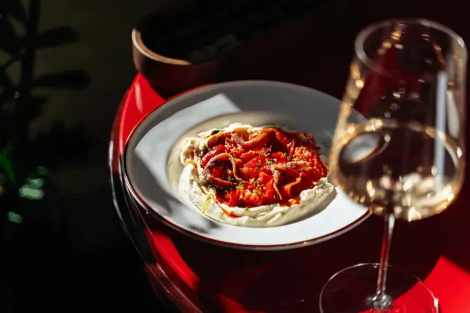 Еще одно нововведение — контактная барная стойка. За коктейльную карту отвечают Даня Золотухин и Дмитрий Гукасян (Catch 22, El Copitas). За основу миксов взяты шесть любимых вин всех участников команды (Pet Nat Spritz, Shiraz Bramble, Pino Noire Negroni).