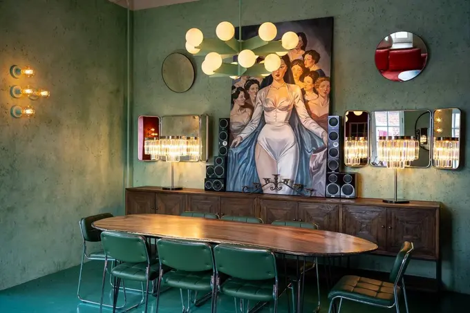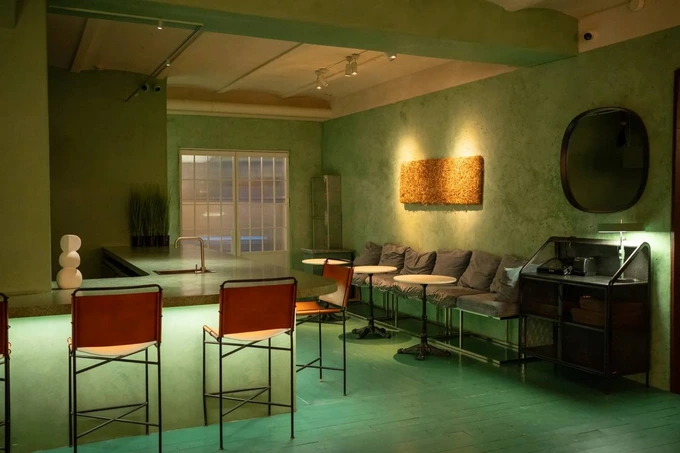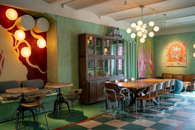 Основа интерьера — совриск, зелень (живая и на стенах) и винтажная мебель. Напоминает закрывшийся Blanc. Украшать окружение команда планирует котятами манеки-нэко из путешествий. Одну фигурку расписала художница Ира Беспалова, она же создала настенное панно с персонажем из своей вселенной.